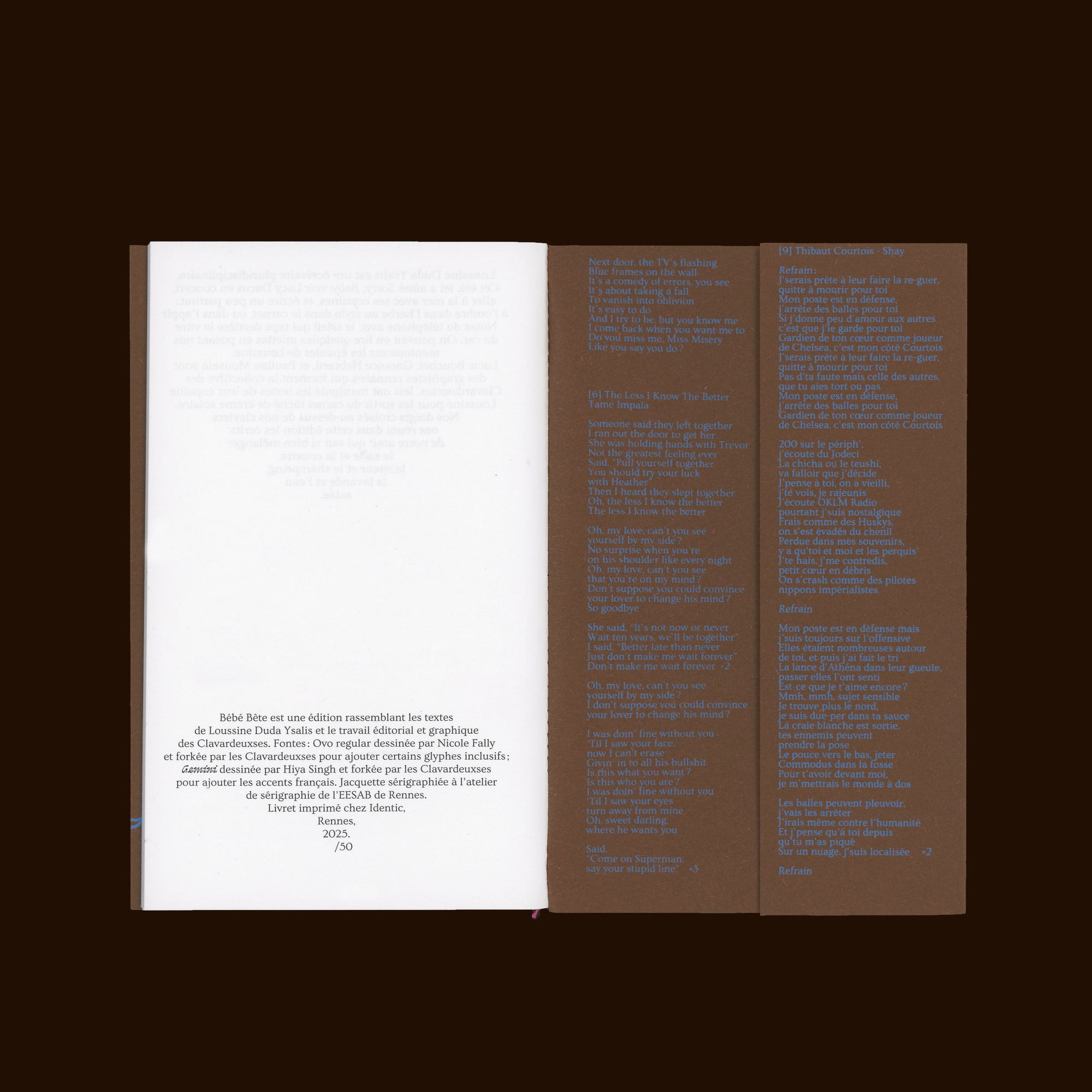 Conception du site : Lucie Bouchet, Garance Hebrard et Pauline Mousain, octobre 2025. Typographies : Panchi Mono par Erwan le Rétif (use & modify), Fluxisch Else par Delphine Platteeuw, Grégoire Vigneron, Pierre Huyghebaert, Pierre Marchand (OSP foundry) et Adrian Frutiger.