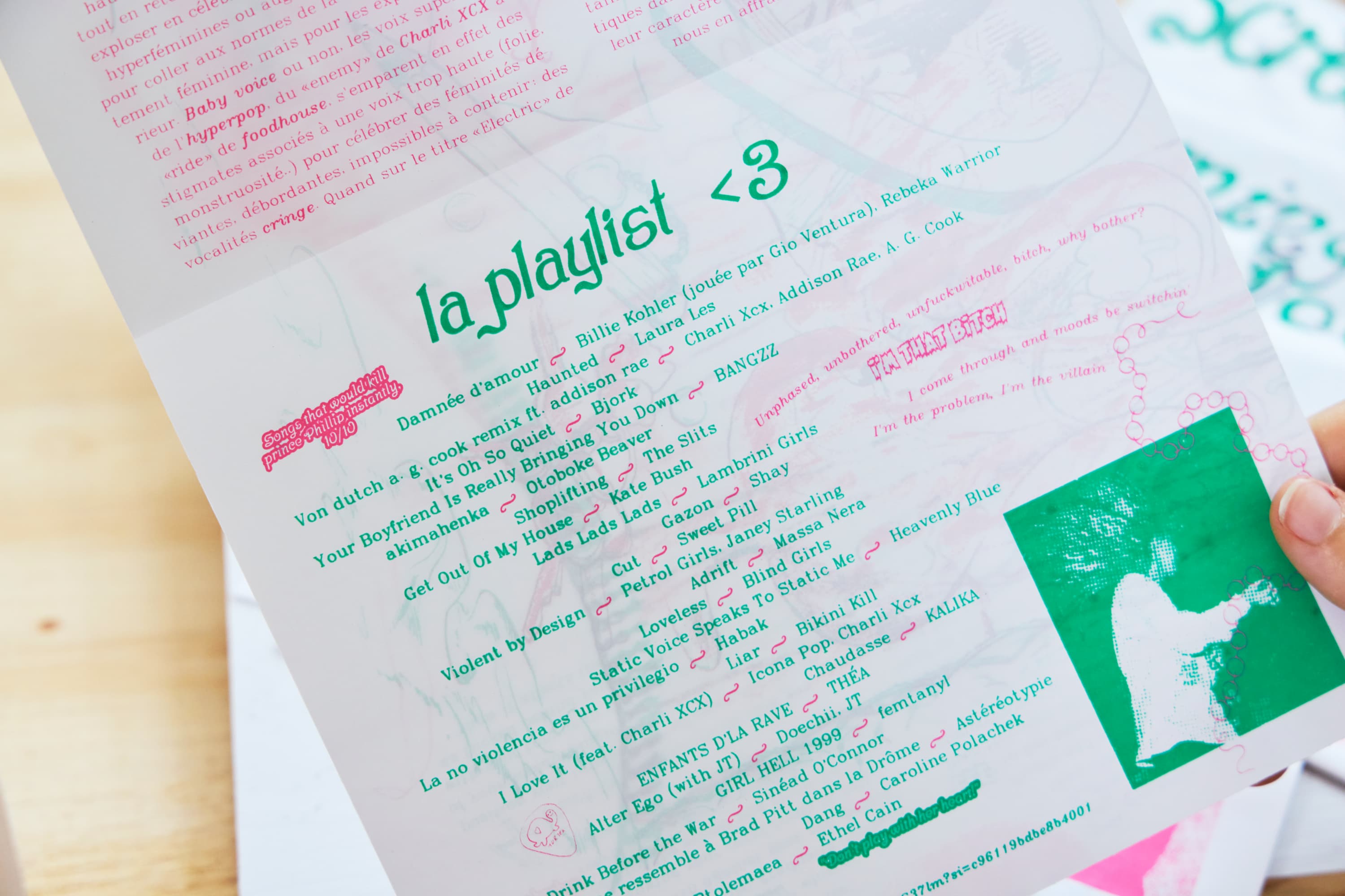 Screaming grrrlssss est un hommage aux filles qui crient dans leurs micros / une playlist / une édition se déployant en affiche. Brailleuses, grinçantes, beuglantes, essoufflées et suantes, les screaming grrrrls règnent