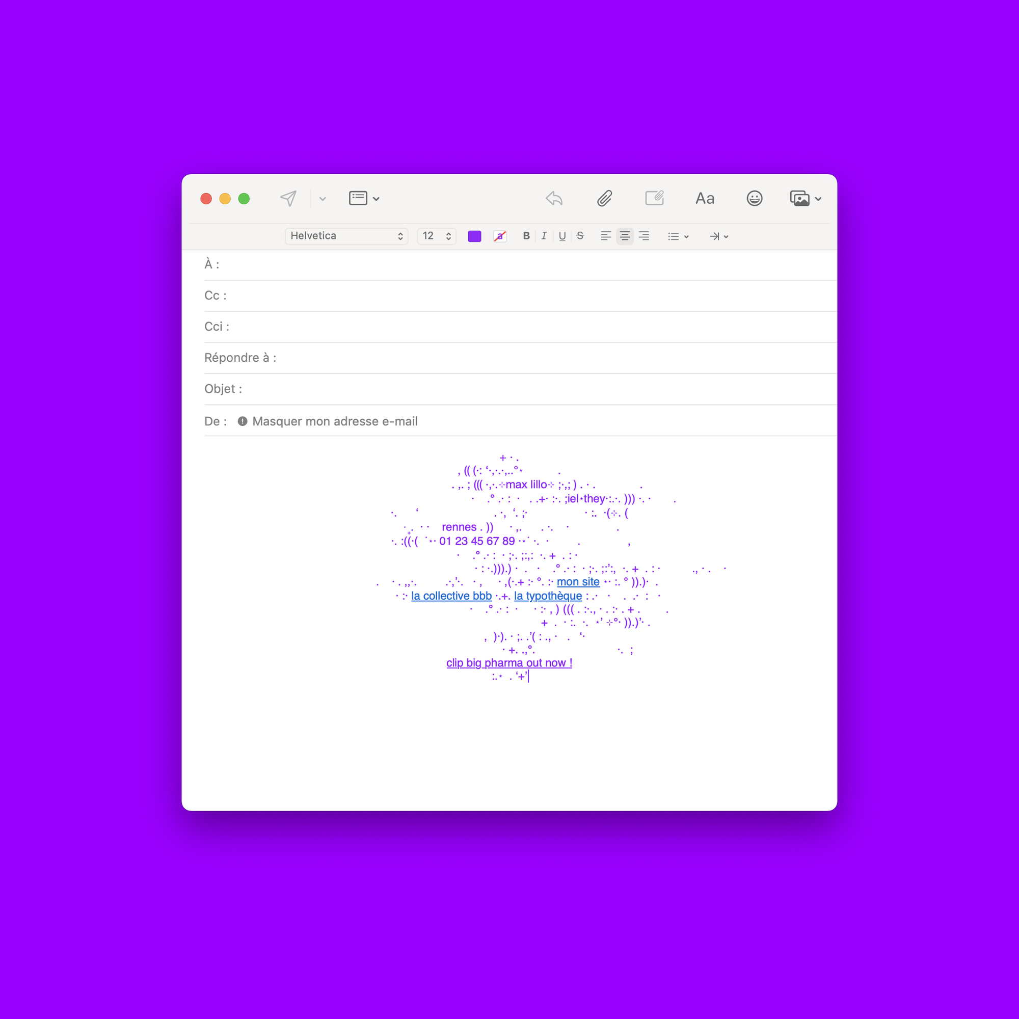 Conception d’une double signature mail en ASCII art. Max Lillo est graphiste et avait